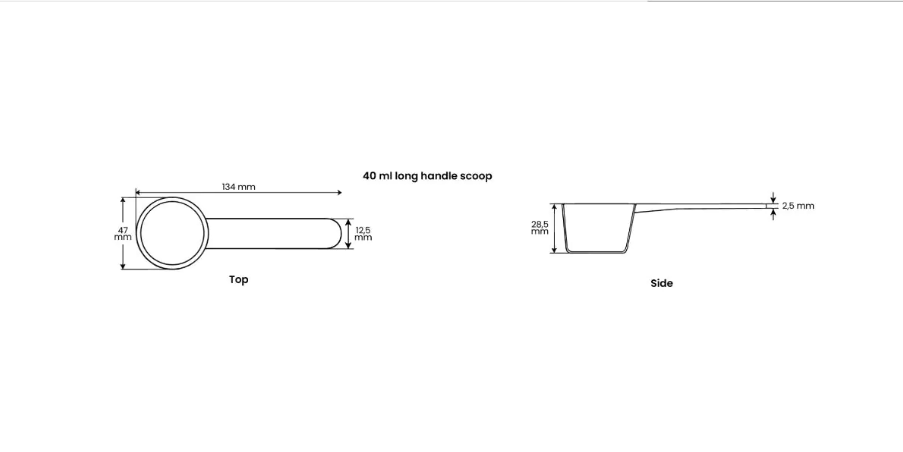 Der lange Stiel erleichtert es, tief in Standbeutel zu schöpfen. Dies ist ideal für Produkte wie Pulver, Nahrungsergänzungsmittel, Kaffee und mehr. Dank des transparenten Designs können Sie Ihr Produkt beim Abmessen noch besser sehen. Erhältlich in Schachteln mit 1.000 Stück!